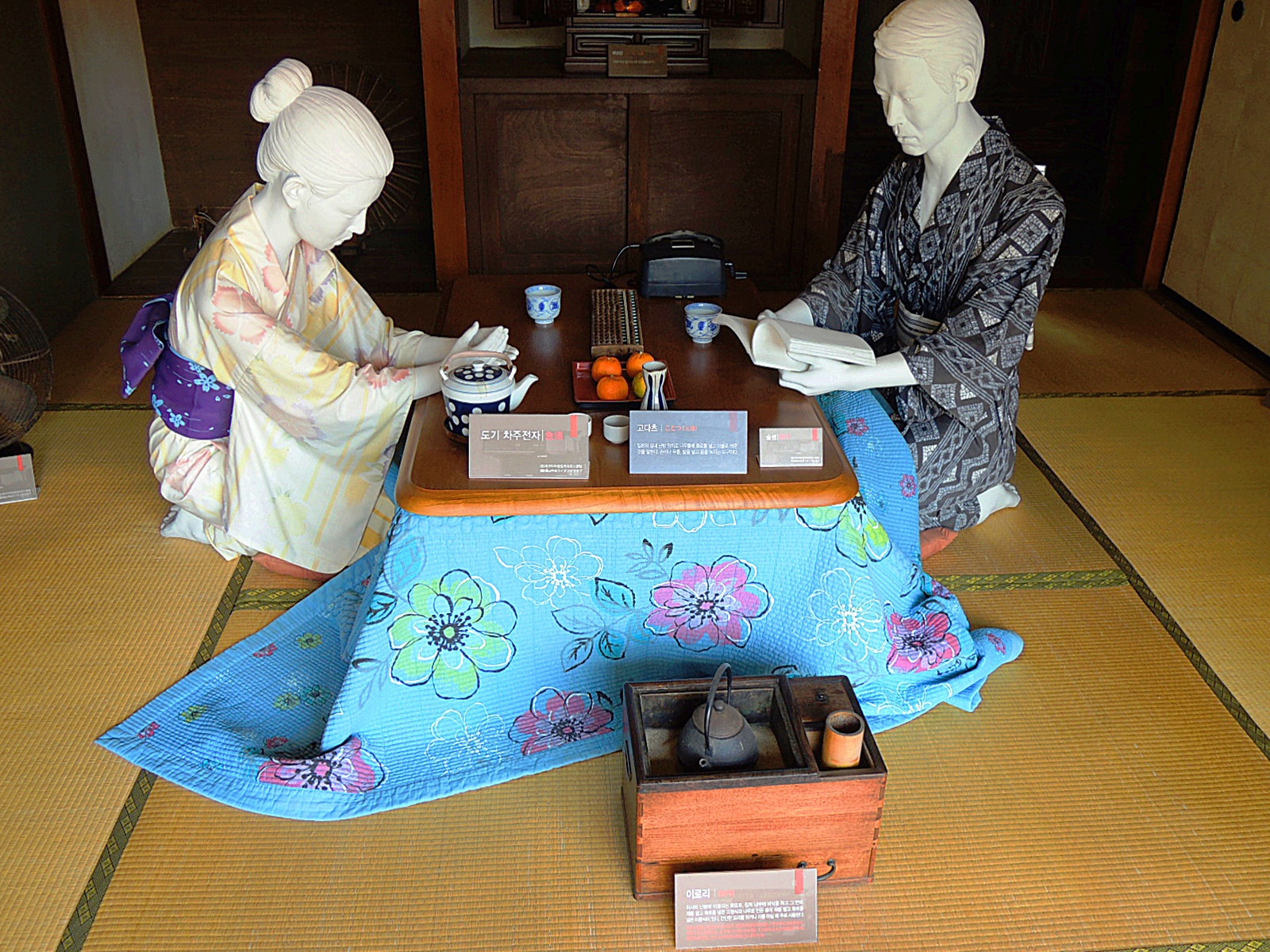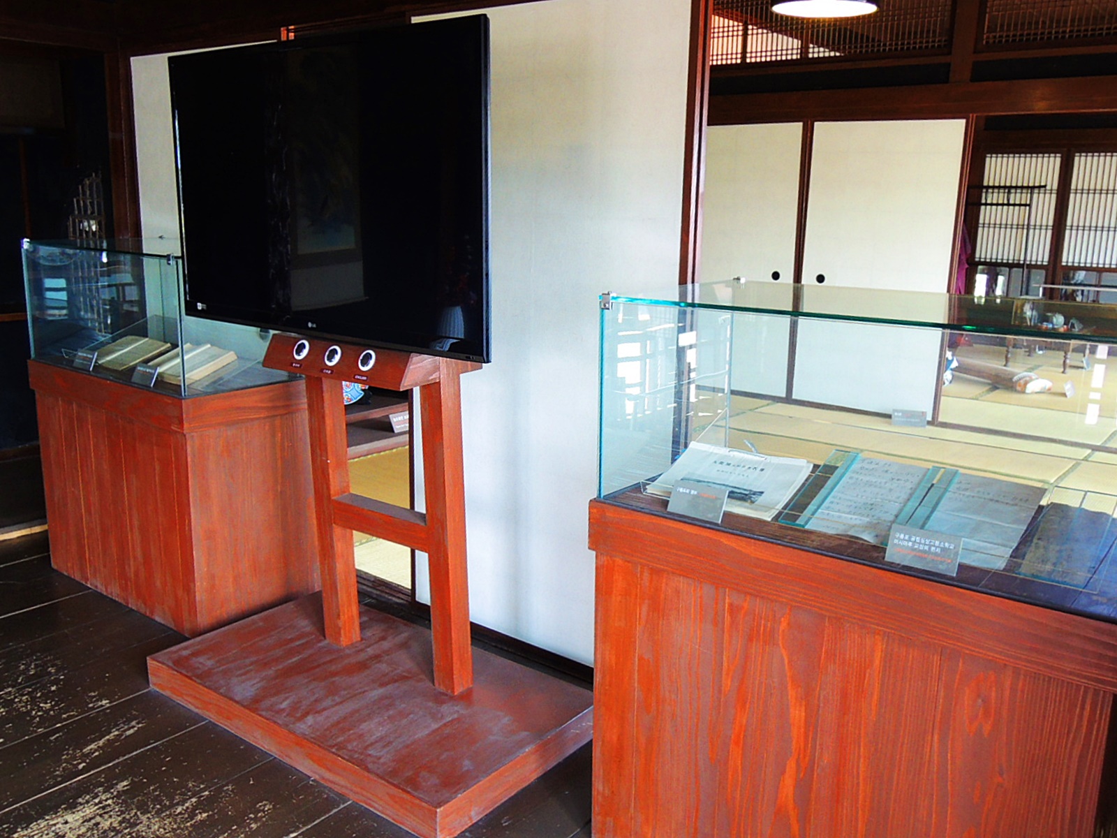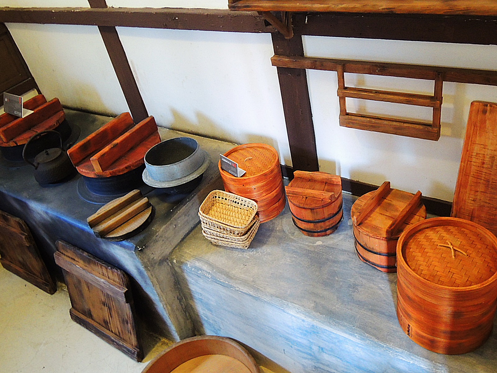 이곳은 하시모토 가옥의 집무실로 이용되던 곳을 부엌으로 복원 하였다고 한다. 부엌 아궁이에서 불을 때서 그 열기로 난방을 하는 우리나라와는 달리 아궁이가 바깥 벽쪽으로 나 있다. 외부에서 들어가는 문과 방으로 이어지는 문이 있다.