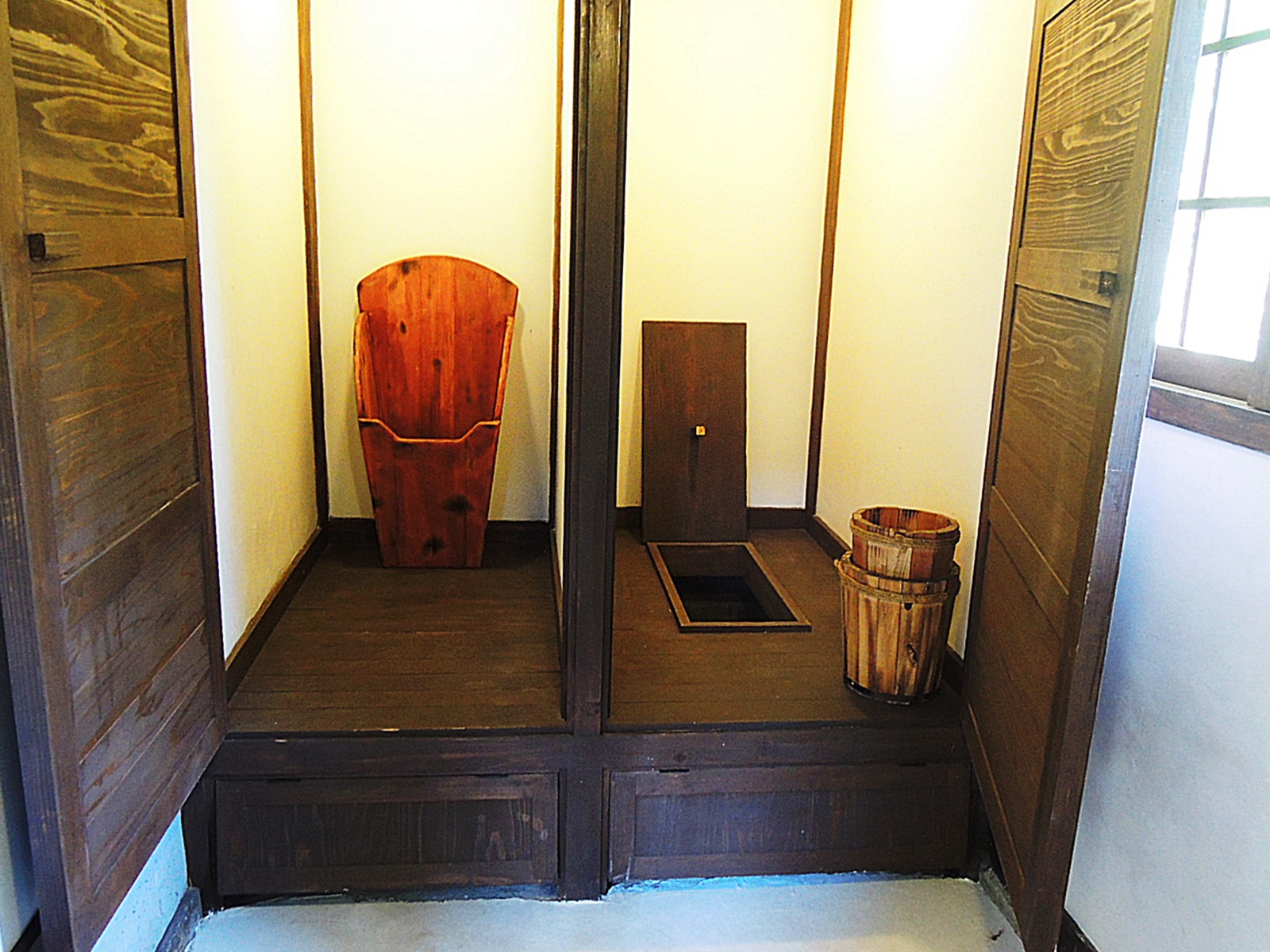 하시모토 가족이 살던 당시에 이곳은 부엌과 식당이 있던 곳이다. 복원 당시에 외부에 있어서 철거 되어버린 화장실을 이곳에 복원하였다. 전통 재래식 화장실을 재현한 것으로 대변기와 소변기가 나누어져 있다.