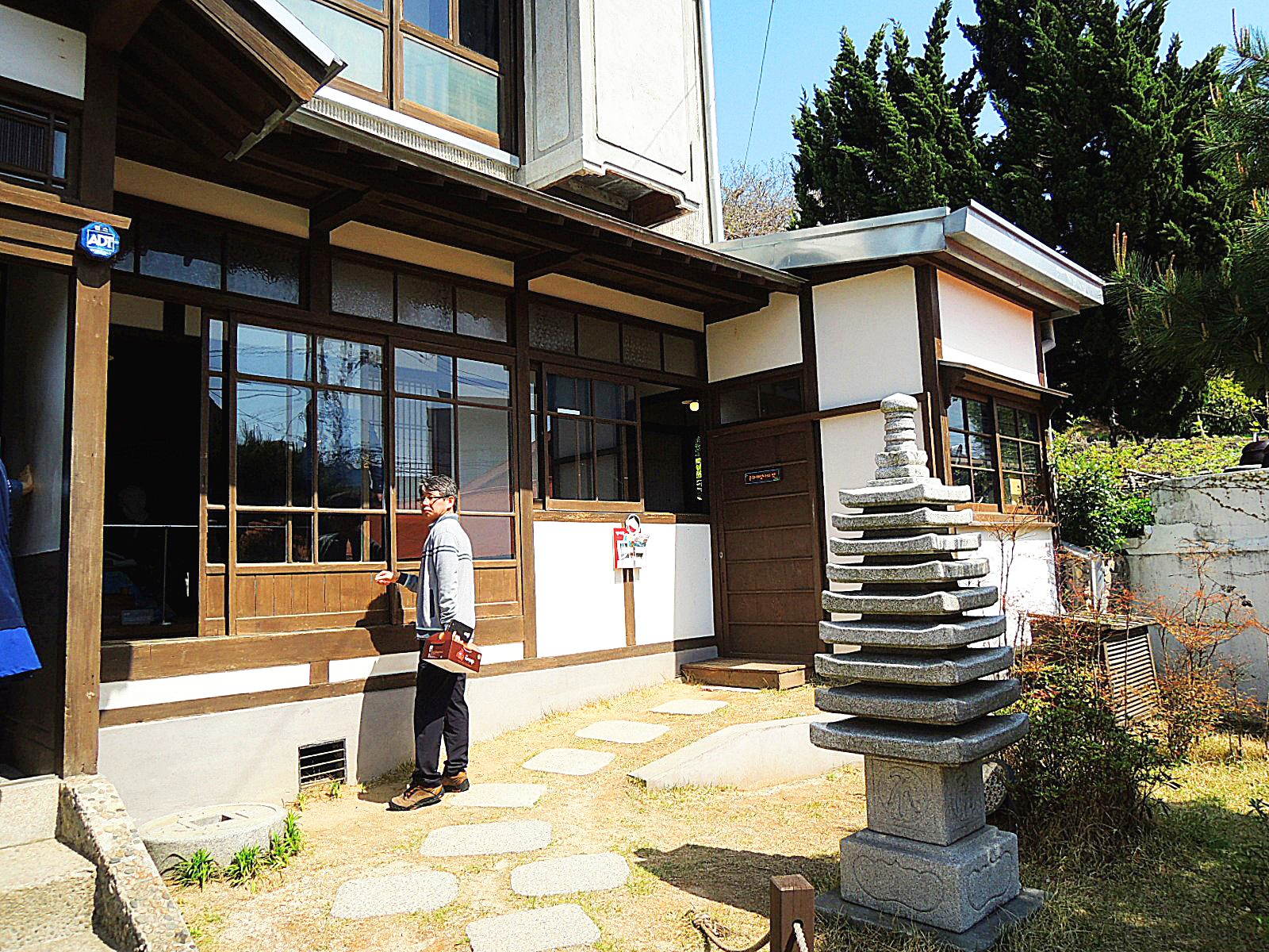 이곳 공원 입구 계단과 돌기둥들은 1944년도 일본인들이 세웠으며 돌기둥은 왼쪽 61개 오른쪽 59개 모두 120개 있다. 돌기둥은 구룡포항을 조성하는데 기여한 구룡포 이주 일본인들의 이름이 새겨져 있다.